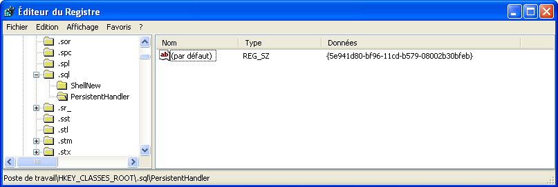 - Dans l'éditeur de registre, trouver la clé correspondant au type de fichier dans